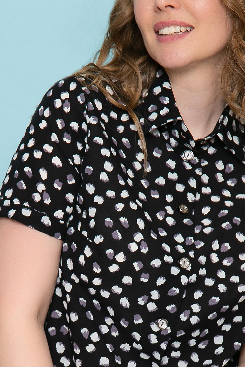 Элегантная блуза с коротким рукавом - прекрасный вариант для создания делового образа в тёплый период. Блуза прямого кроя на пуговицах. Классический отложной воротничок.