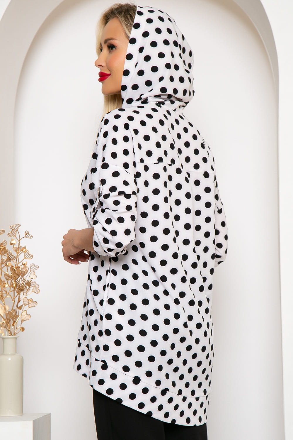 - Цвет: белый, черный, принт - горох;