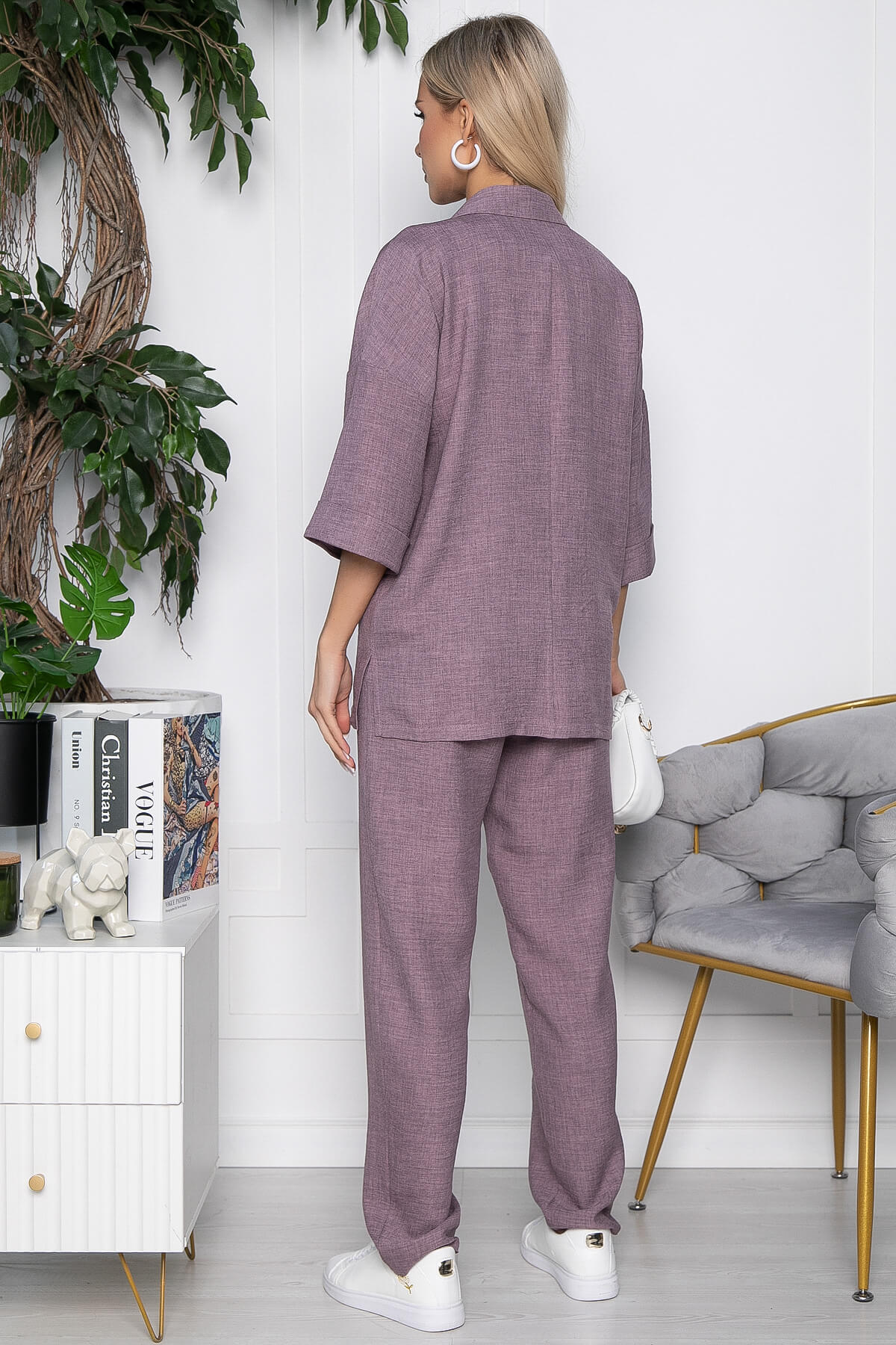 Летний брючный костюм из легкой ткани – один из лучших вариантов в жаркую погоду! В нём вы будете себя чувствовать уверенно и комфортно. Можно носить совместно так и раздельно. Этот брючный костюм подойдет как для дома, так и для выхода на пляж или вечернее мероприятие. Жакет свободного кроя на пуговицах, рукав 3/4 спущенный на манжете. Брюки полуприлегающего силуэта на резинке, есть карманы.