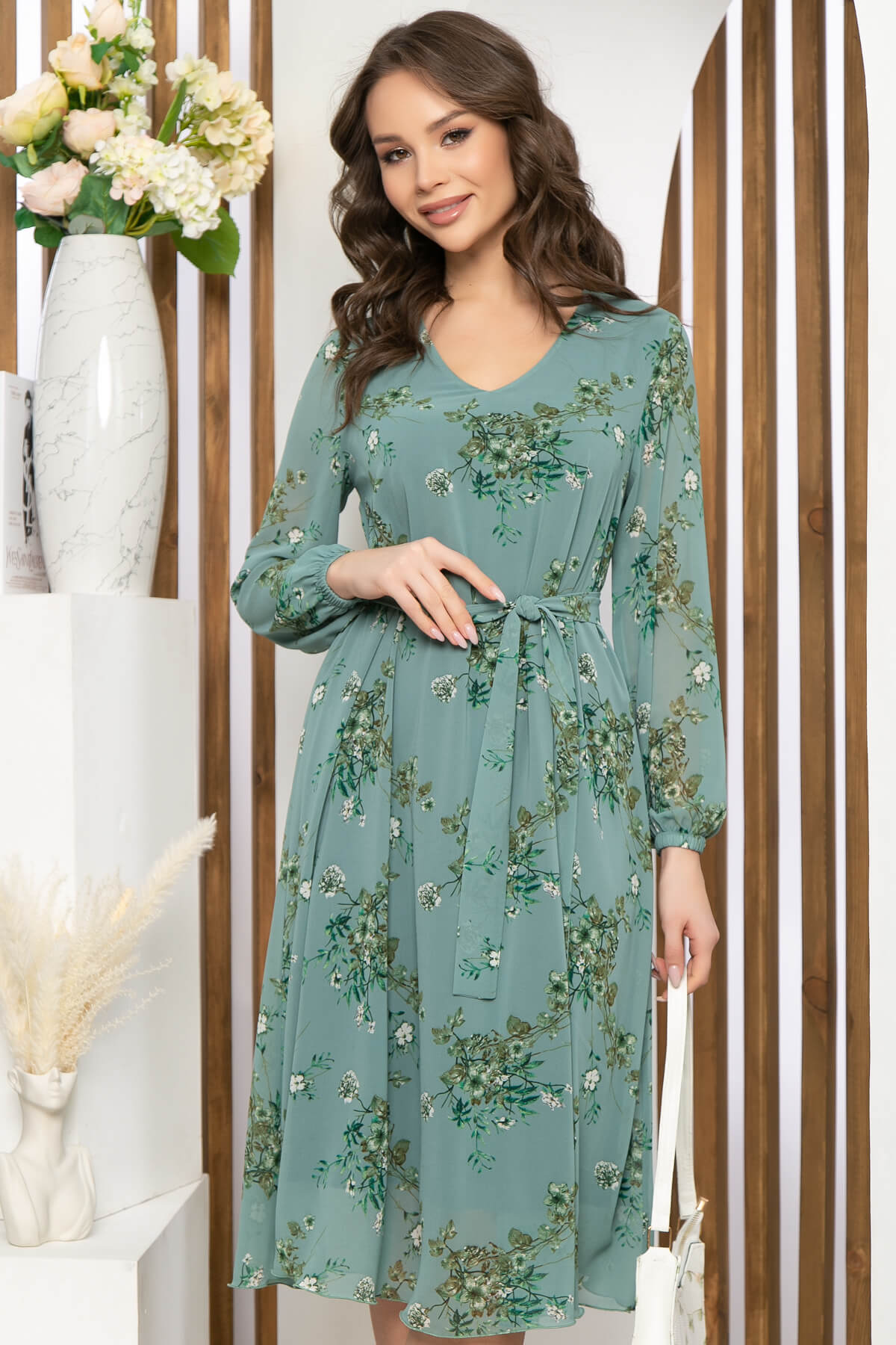 Шифоновое летящее платье идеально подчёркивающее Вашу женственность. Платье свободного силуэта на подкладке. Мягкий V-образный вырез горловины красиво открывает зону декольте и Ваши ключицы. Длинный, втачной рукав, низ на резинке. Пояс из основной ткани входит в комплект.