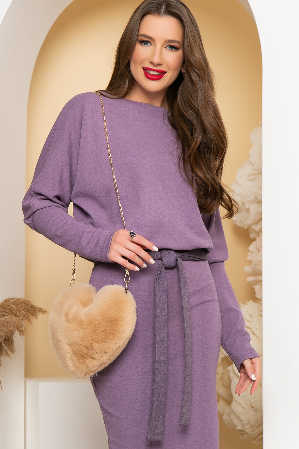 Платье из мягкого, приятного к телу трикотажа в красивом лиловом оттенке. Элегантная юбка подчеркнёт красоту женской фигуры и визуально вытянет силуэт, а свободный верх не будет сковывать движения. Платье прекрасно подойдёт в качестве повседневного варианта и будет хорошо сочетаться как с туфлями или ботильонами, так и с кроссовками или ботинками. Благодаря своему фасону, платье прекрасно справляется с задачей скрыть небольшие недостатки фигуры и подчеркнуть достоинства. Пояс из трикотажа входит в комплект.