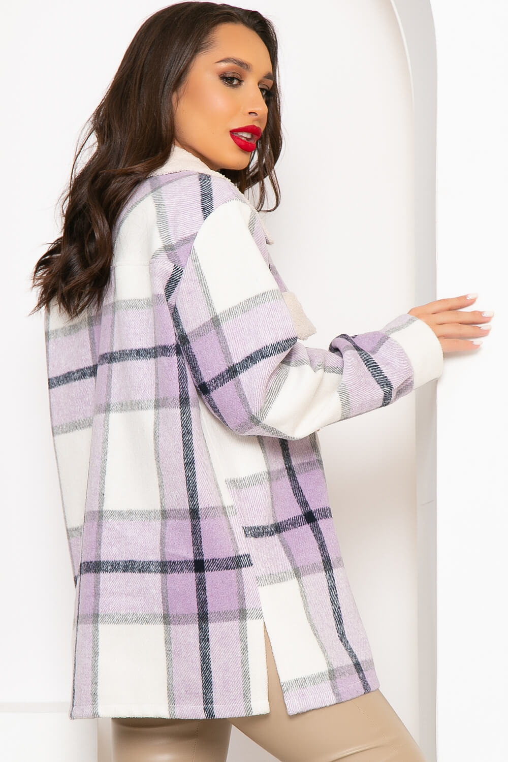 Тёплая рубашка в клетку - универсальный второй слой. Её можно носить в сочетании с джинсами, лосинами или брюками. Дополнить образ можно тёплой панамой. Воротник и клапаны карманов сделаны из шерсти-букле.