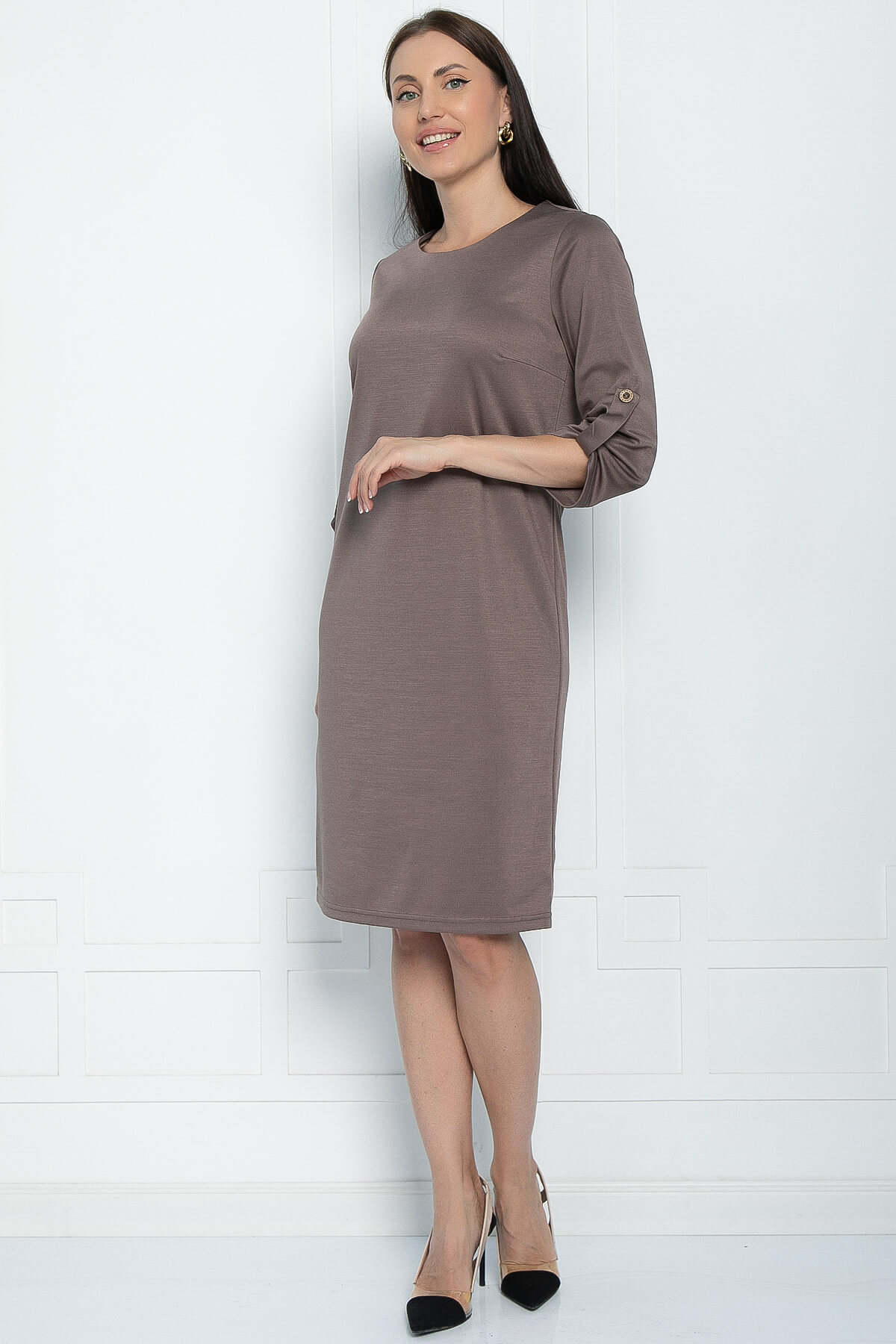 Базовое платье — это модель, которая сочетает в себе стиль и комфорт. Его рукав украшен декоративной патой, что придаёт ему особый шарм. Такое платье можно носить с любой обувью, оно универсально. А пояс из основной ткани изящно подчеркнёт вашу талию, сделав образ ещё более женственным.