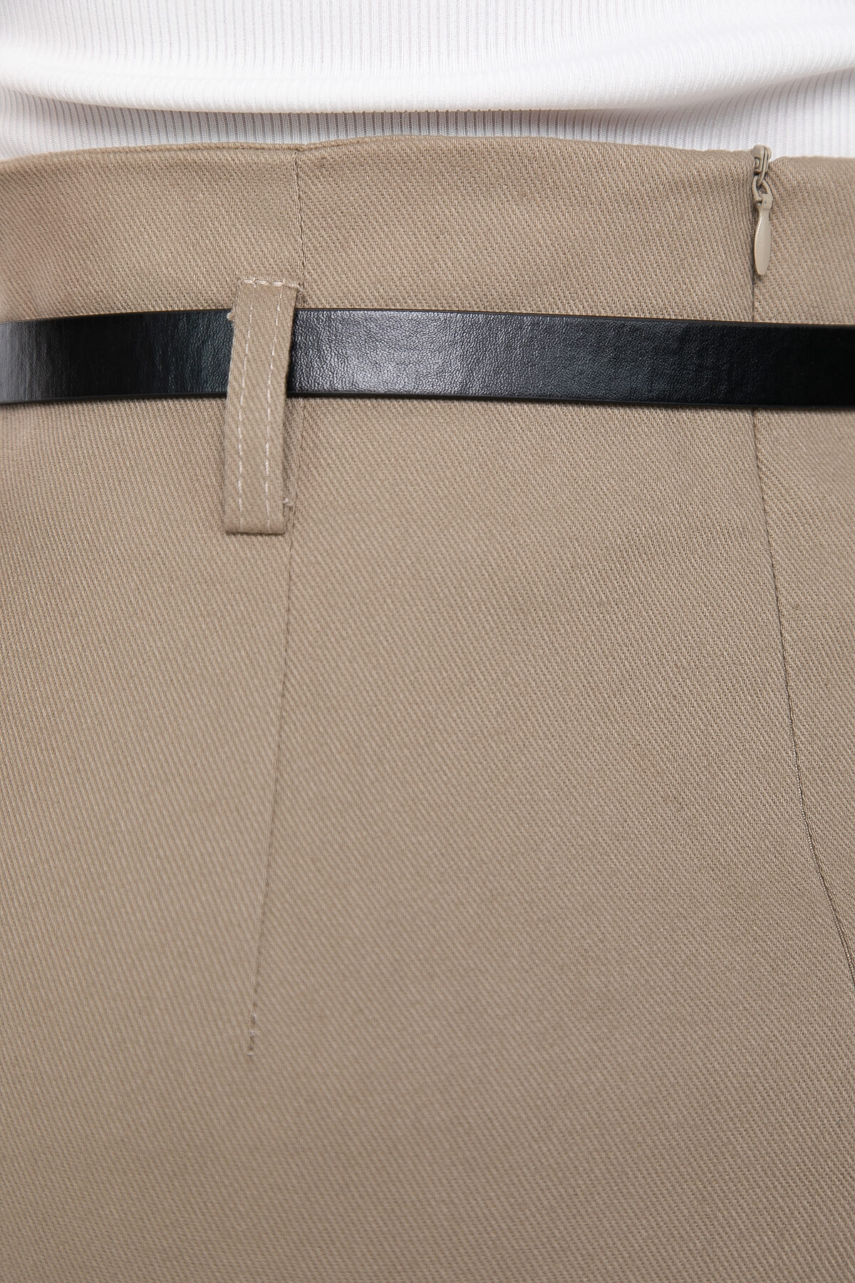 Юбка длиной миди с разрезом спереди, сшитая из джинсовой ткани – вещь, которая точно не станет лишним в вашем гардеробе. Такая юбка идеально сочетается с любым вариантом верха от строгой рубашки до романтической блузки с пышными рукавами и оборками. Ремень из кожзам идет в комплекте, в боковых швах присутствуют карманы.